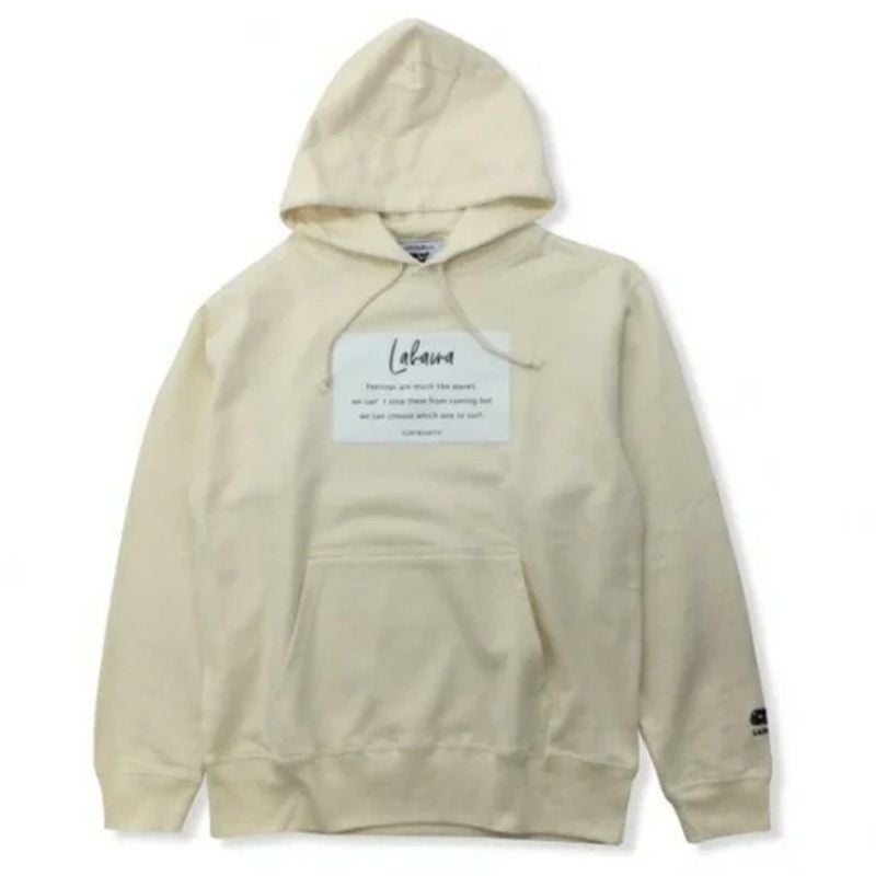 左袖に花クジラの刺繍が入った男女問わず着こなしやすい裏毛仕様のプリントプルオーバーパーカーです。