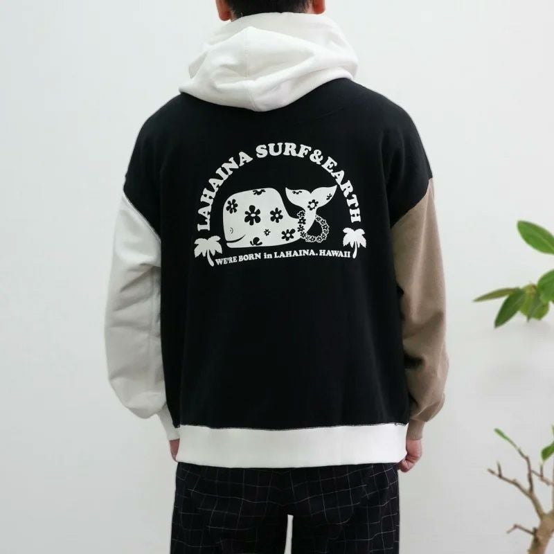 LAHAINA 半円花クジラマルチ配色ビックパーカー