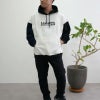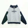 新作のマルチ配色プルパーカー。 左右の袖、フード&リブの配色が違うインパクト抜群のデザイン。 オーバーサイズデザインのためビッグシルエットの着こなしが楽しめます。 肉厚な12オンスのタフなボディを使用。 USAコットンならではの、着こむほどに味が出る独特の風合いがたまりません。