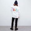 大人気半円花クジラをレインボーカラーでプリントした、ロングスリーブTシャツの登場。 定番カラーに加え、今期はチャコールも仲間入り。 しっかりと作られた首回りのステッチと、5.6オンスの厚みのある生地で、1枚で着てもレイヤードでインナーにしても使いやすいアイテムです。