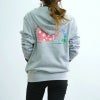 左胸にLAHAINAのロゴ、バックには半円花クジラのプリントが入った、ジップパーカです。 男女問わず着こなしやすいく、裏毛仕様で快適&暖かな着心地となっています。