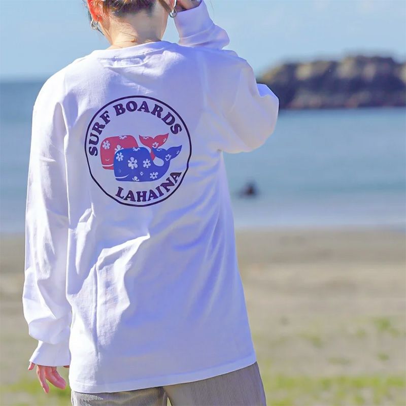 LAHAINA復刻花クジラロンT(カップル)。ポケット付きロンTに懐かしい花クジラのプリント。