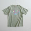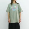フロントにレトロな雰囲気のプリントが入ったTシャツは、 カラフルな配色が大胆で、遊び心いっぱいのデザインです! ボディのニュアンスカラーは、大人のカジュアルスタイルの差し色にもぴったり。