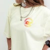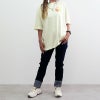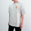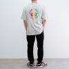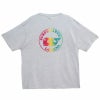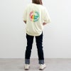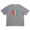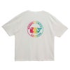 三種のブレンド糸を使用した、柔らかさが魅力のビックプリントTシャツの登場! 爽やかなレインボーサークル花クジラをプリントするのは、綿・ポリエステル・レーヨンの混紡生地。 絶妙な配合の生地は、なめらかな肌さわりが最高です。 トレンドのビックシルエットに仕立てているので、オンオフどちらの使い勝手も抜群!