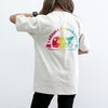 鮮やかな2種類のレインボー花クジラをプリントするのは、上質な肌触りのTシャツ。