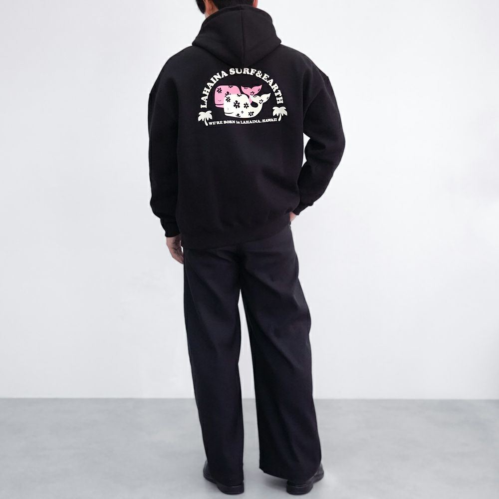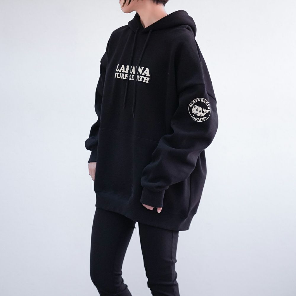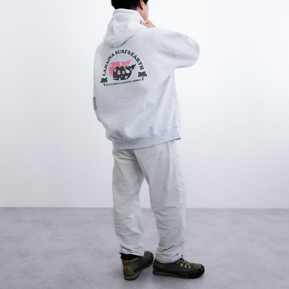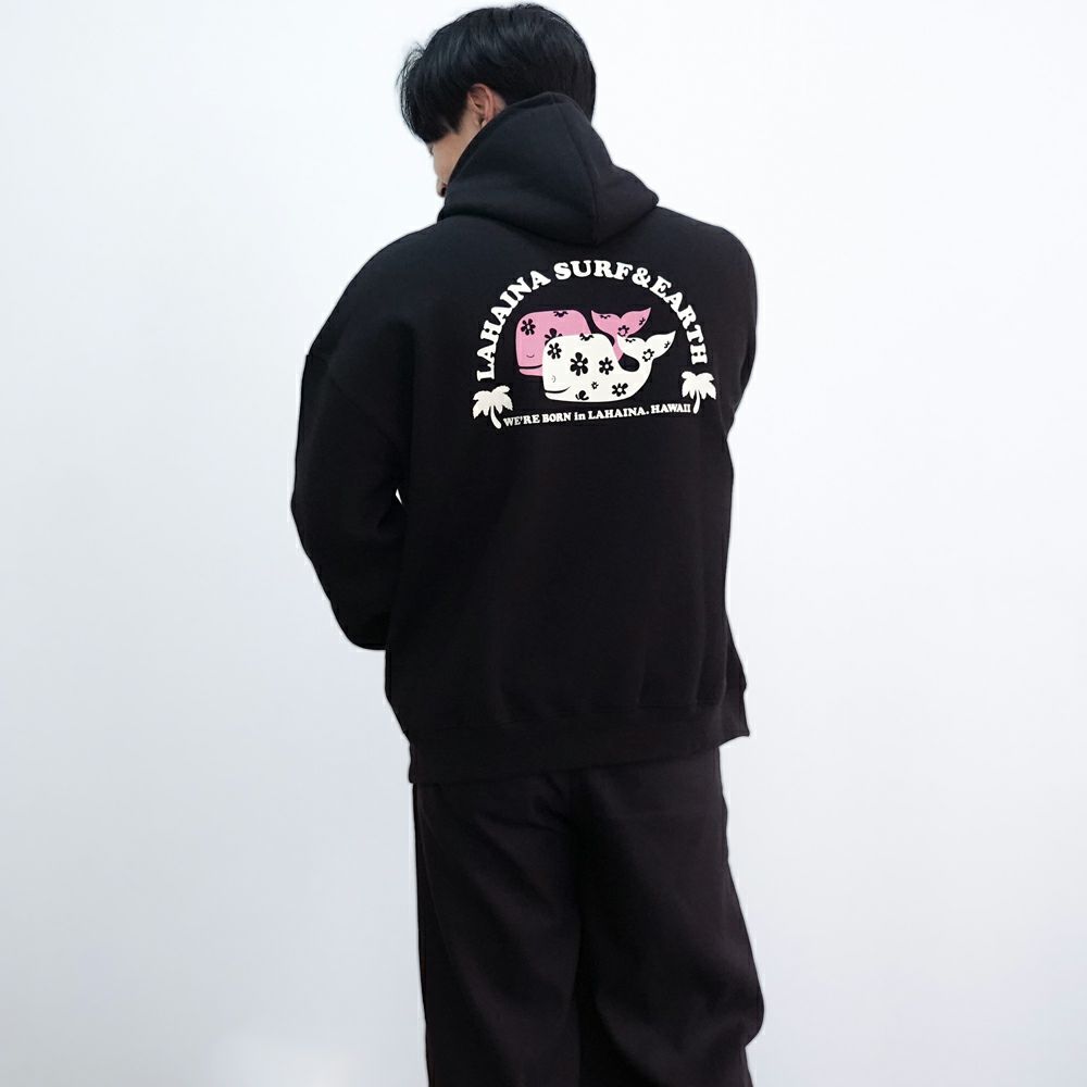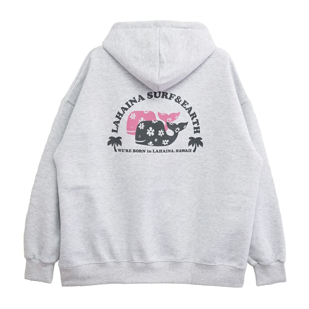 【LAHAINA 花クジラ】リンクコーデにもぴったりなオーバーサイズで、着るだけでリラックス感◎ LAHAINA カップル花クジラWフェイスプルパーカー