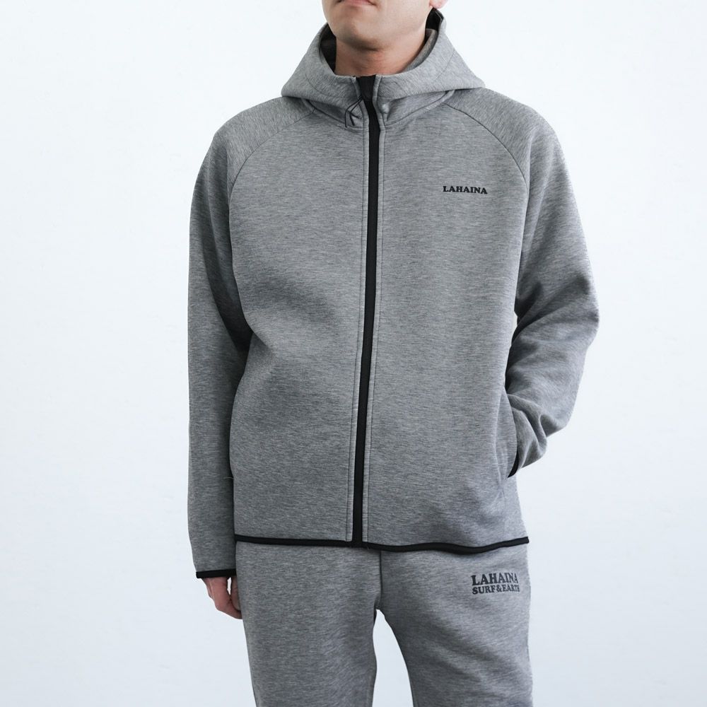【LAHAINA 花クジラ】胸元と袖のロゴがアクセント。ワンポイントで差がつく大人のロゴパーカー LAHAINA Wフェイスプルパーカー