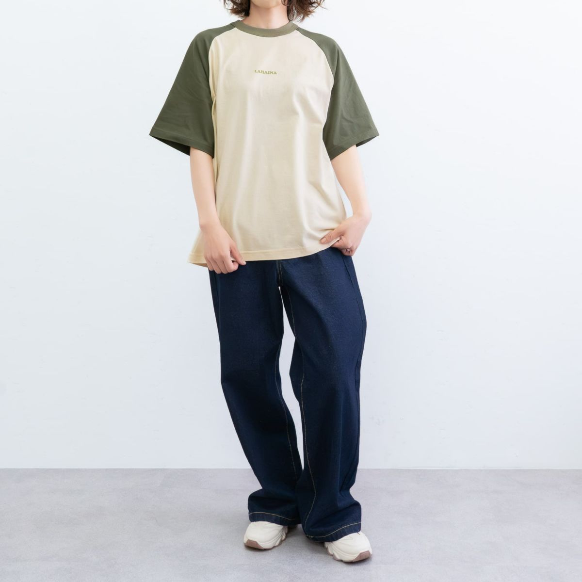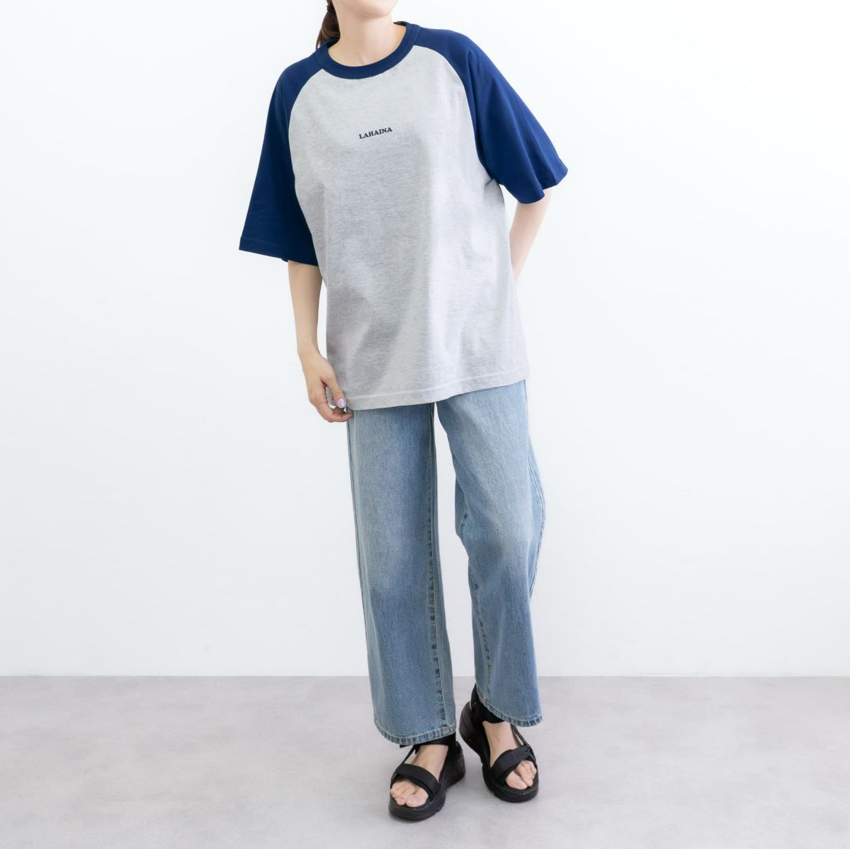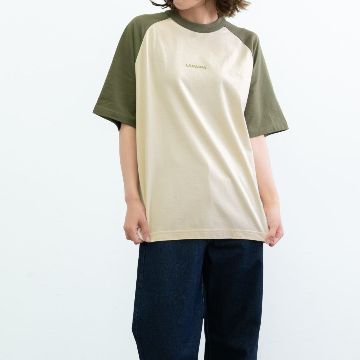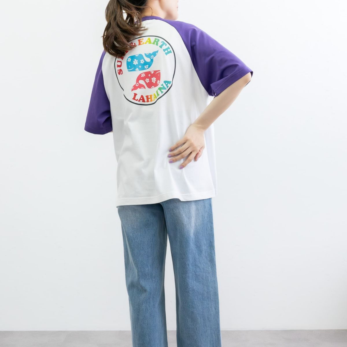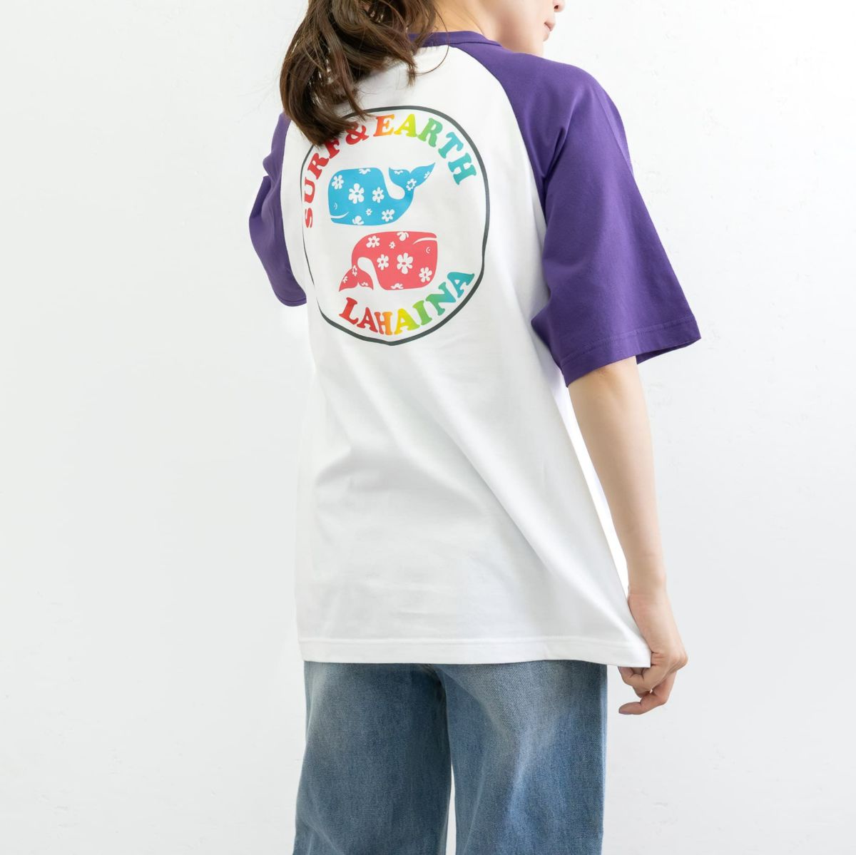 【LAHAINA 花クジラ】レトロカラーなカップル花クジラがポイントのラグランTシャツ LAHAINAカップル花クジララグランスリーブTシャツ