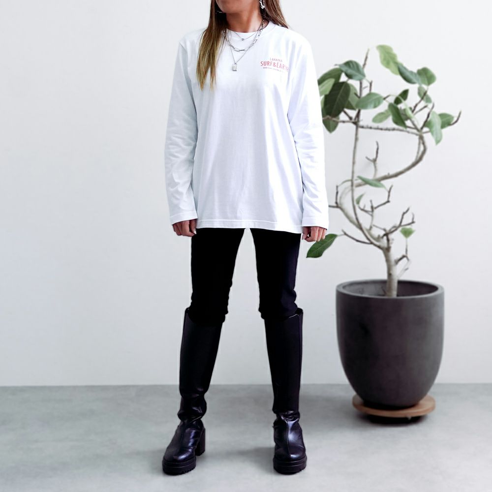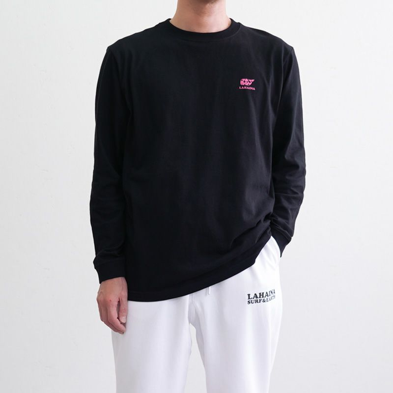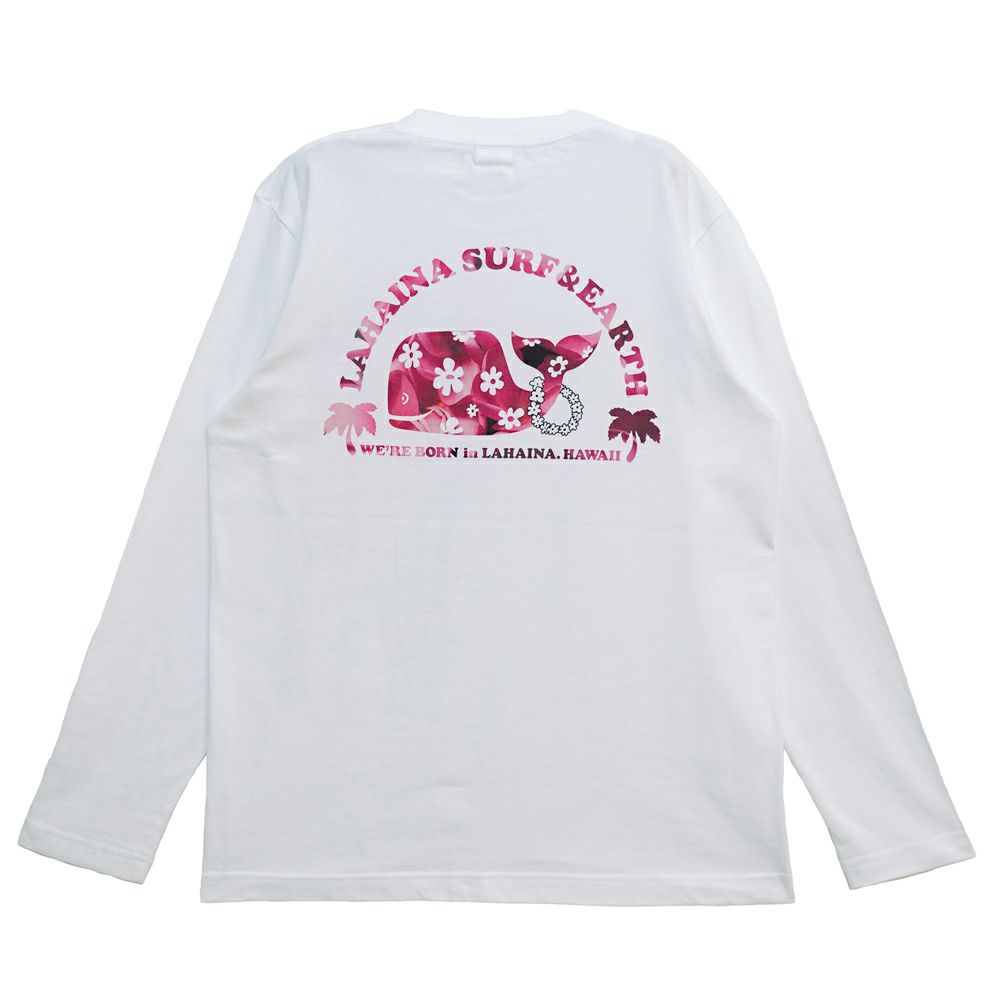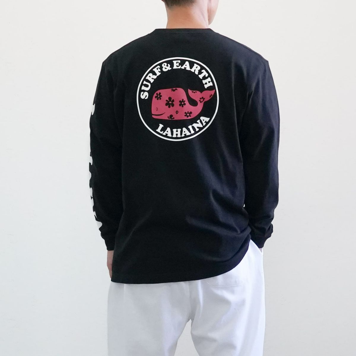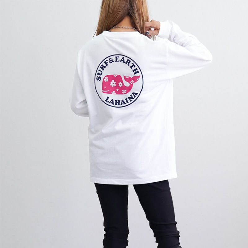 【LAHAINA 花クジラ】サークルロゴにビビットなピンククジラが映えるロンT LAHAINA サークル花クジラロングTシャツ