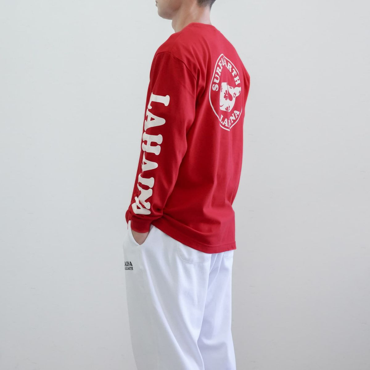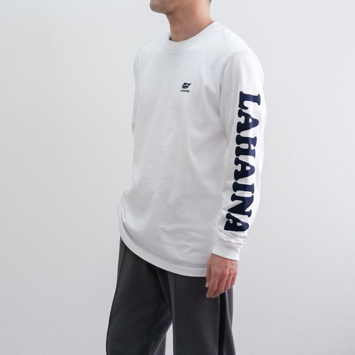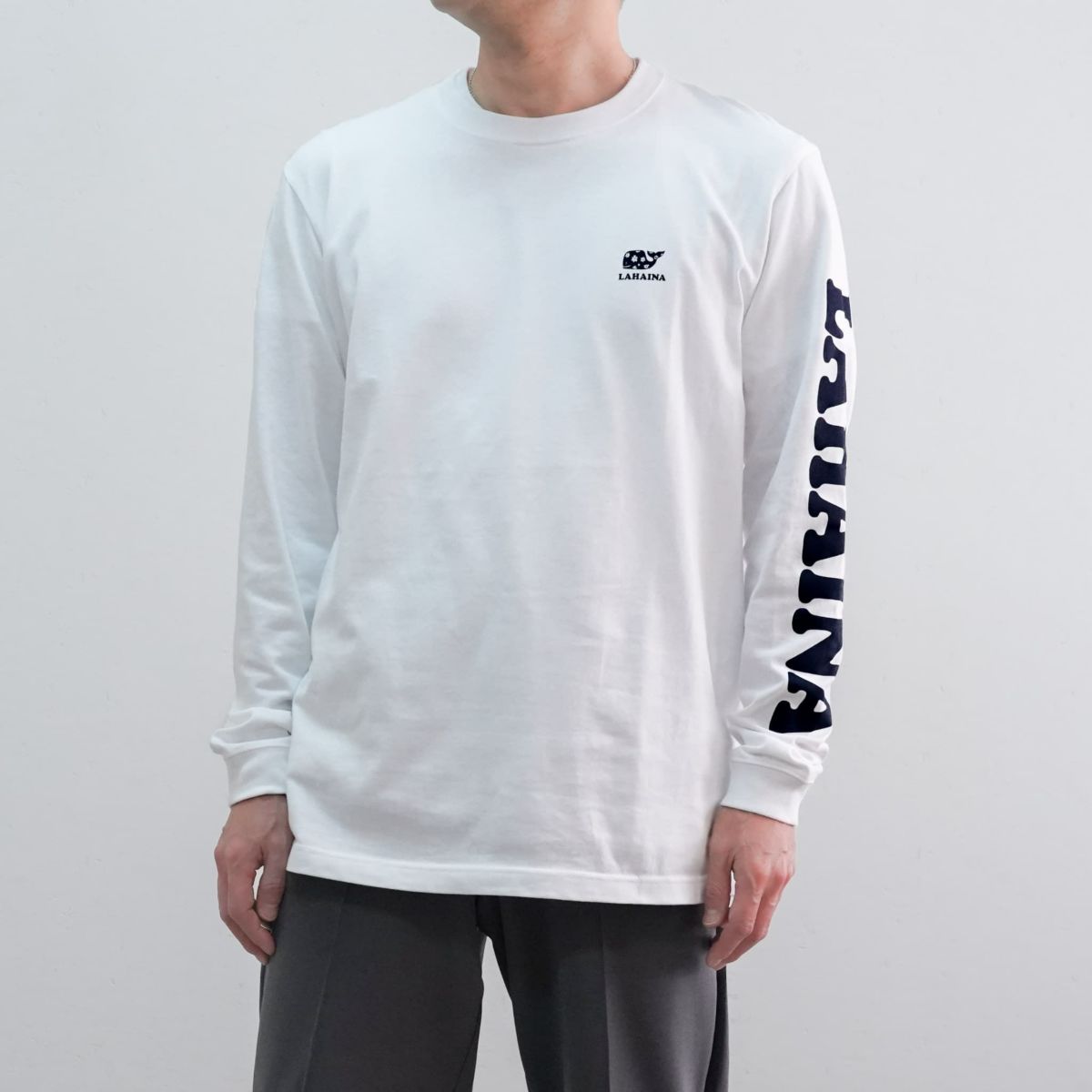 【LAHAINA 花クジラ】スリーブのロゴが存在感のあるロングTシャツ LAHAINAサークル花クジラスリーブプリントTシャツ
