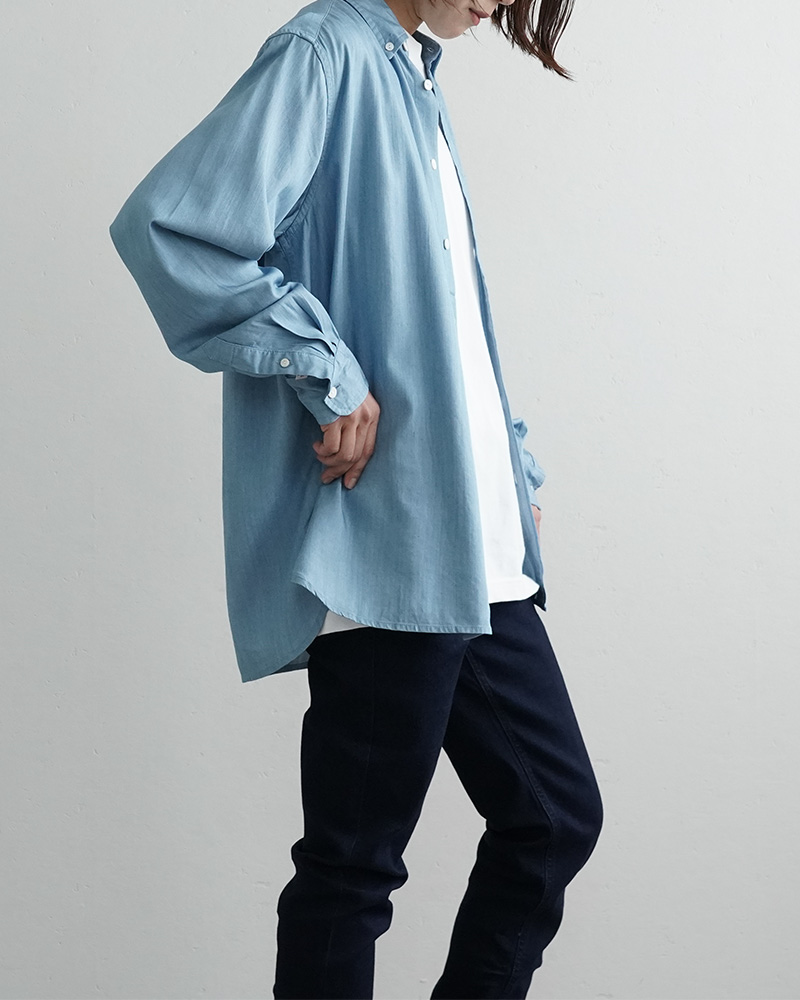 シンプルだからこそ、ロールアップひとつでカジュアルにも、きれいめにも自在にアレンジ。