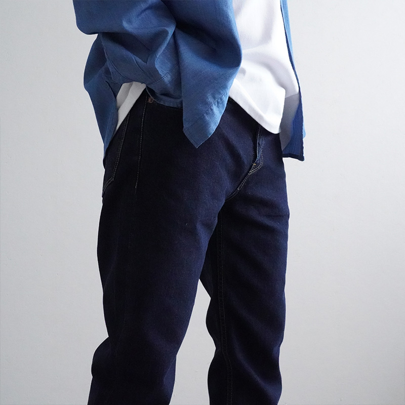 履くたびに色と風合いが変わっていく、生デニムならではの楽しみも。あなたの日常に、心地よく寄り添う一本です。
