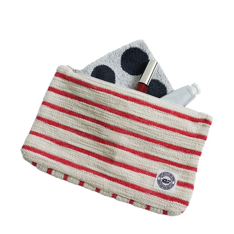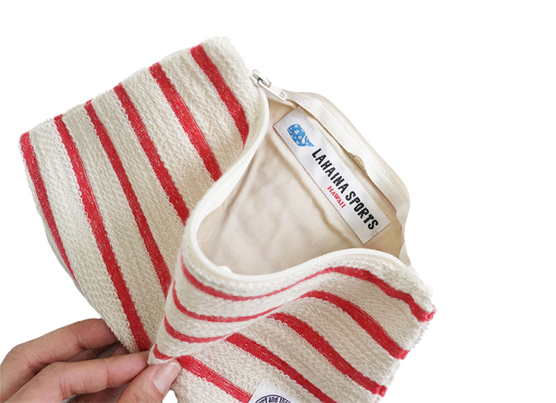 タオル地素材のナチュラルな風合いと、目を引くボーダー。