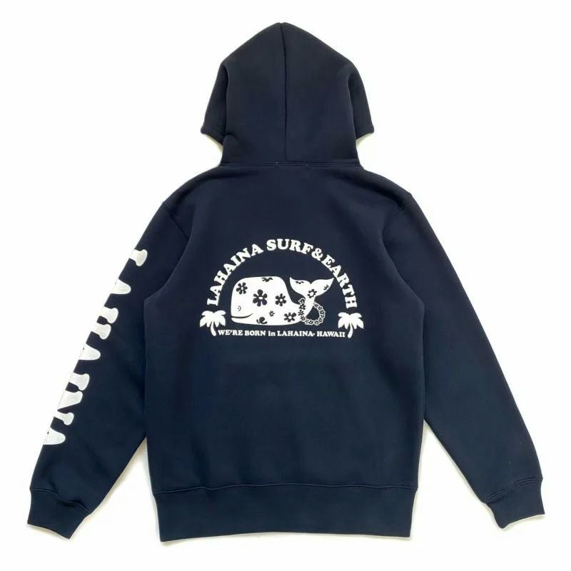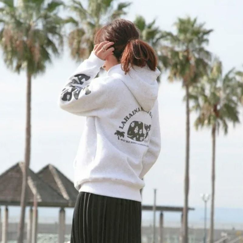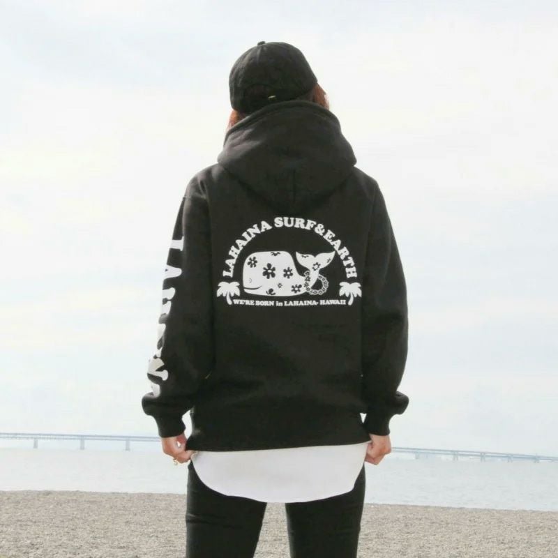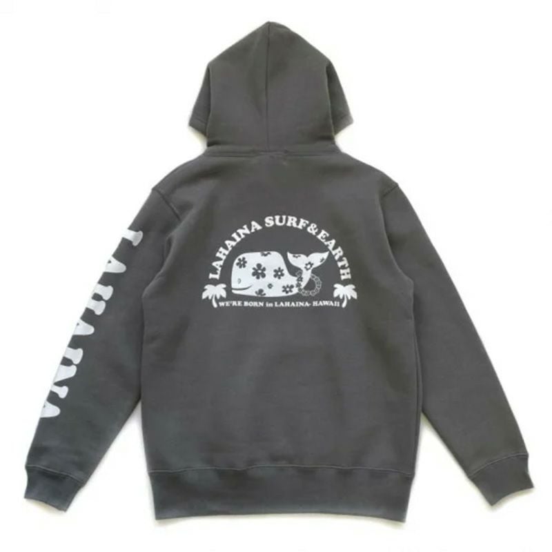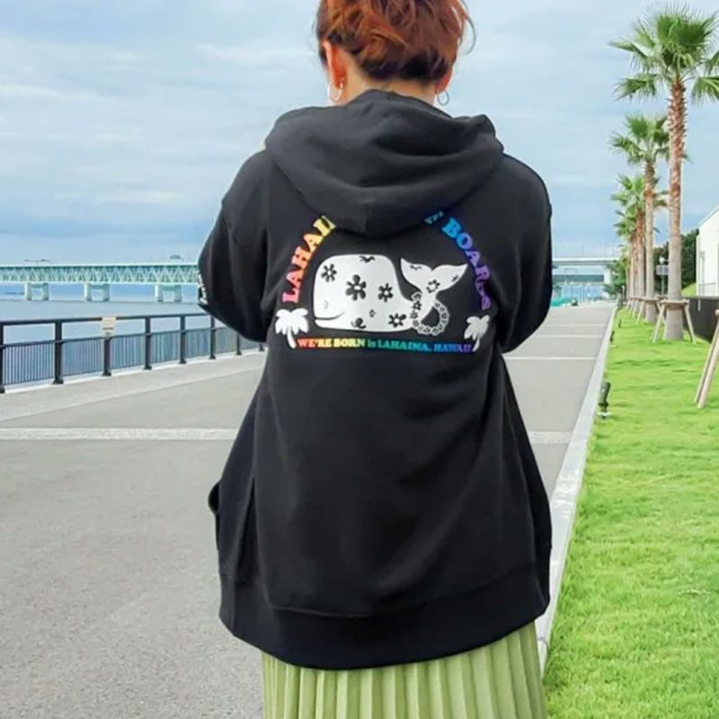 LAHAINA ロゴ花クジラバックプリント裏起毛プルパーカー