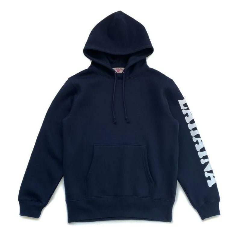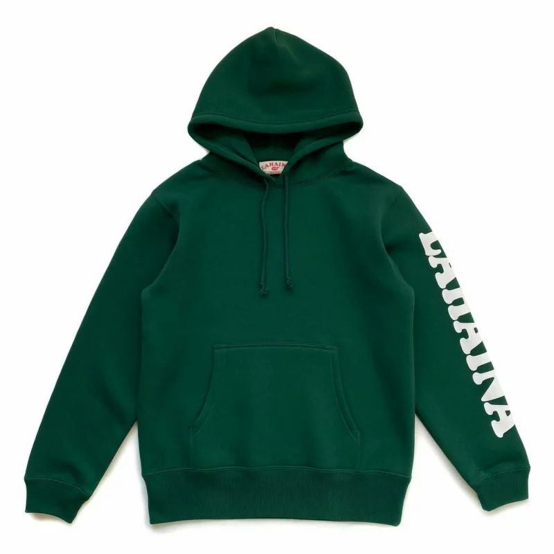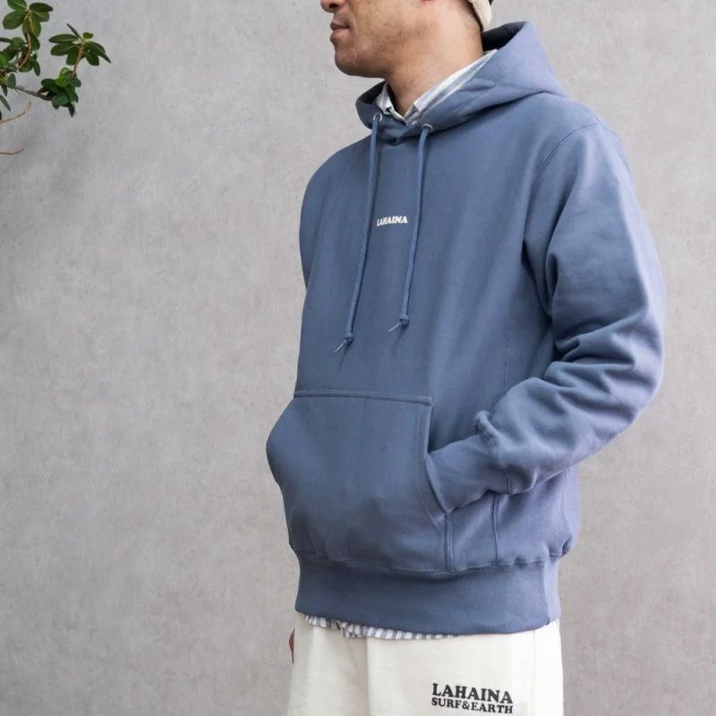 【LAHAINA 花クジラ】胸元と袖のロゴがアクセント。ワンポイントで差がつく大人のロゴパーカー LAHAINA Wフェイスプルパーカー