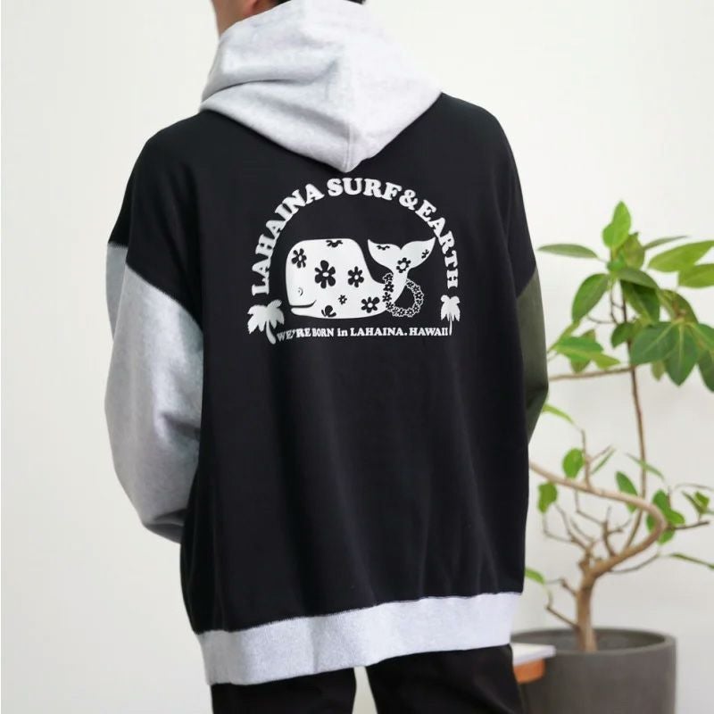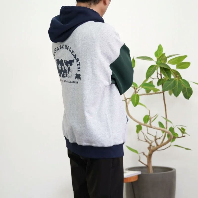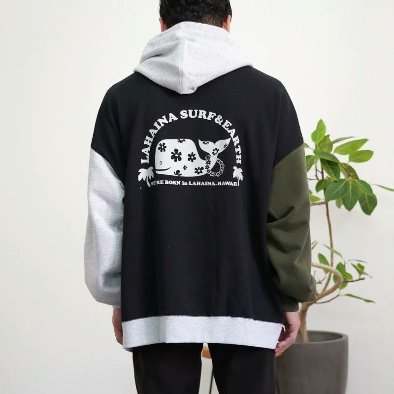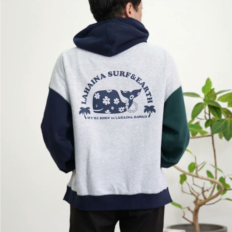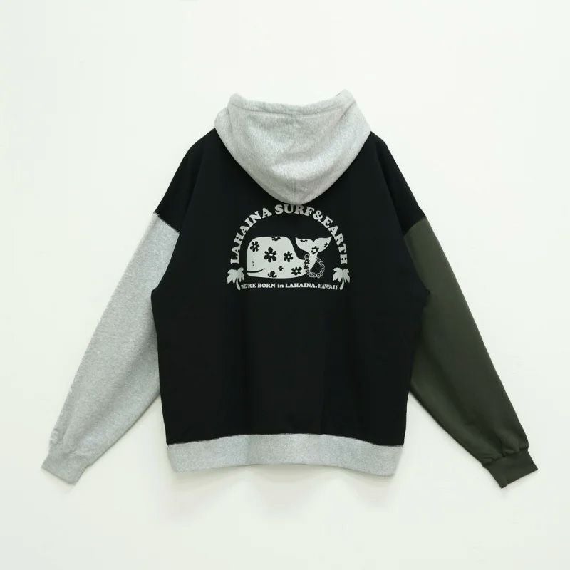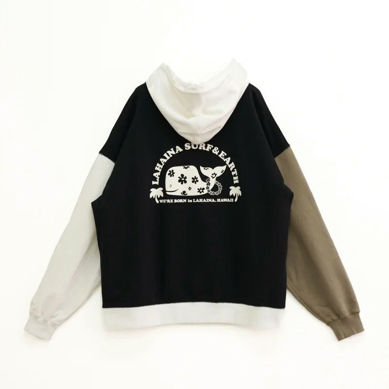 LAHAINA 半円花クジラマルチ配色ビックパーカー