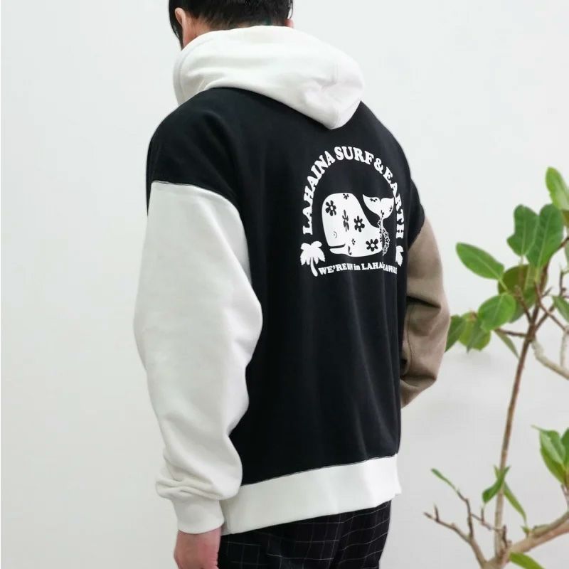 LAHAINA 半円花クジラマルチ配色ビックパーカー